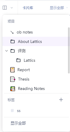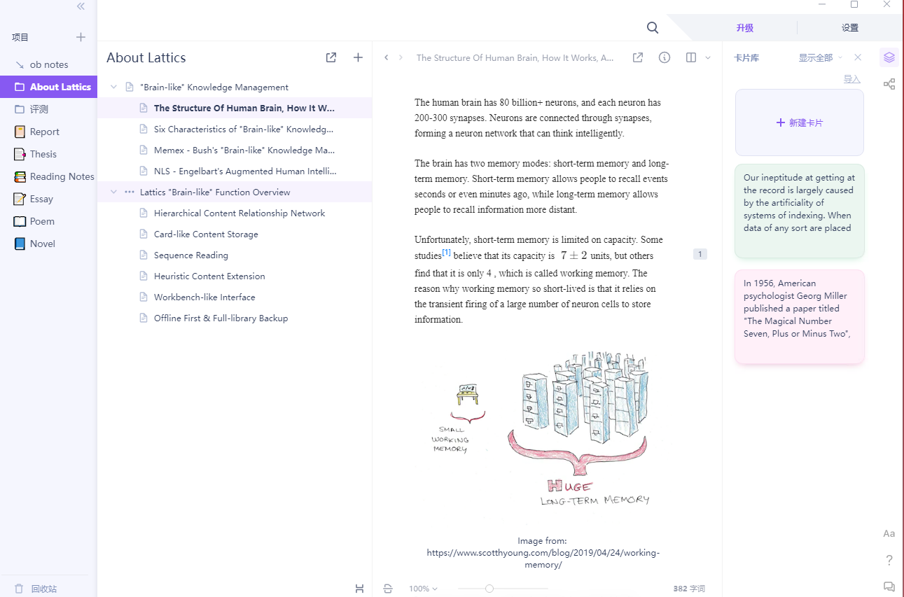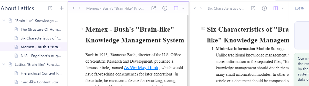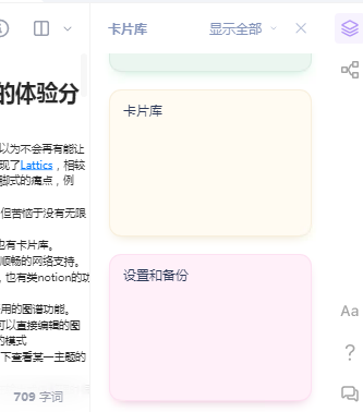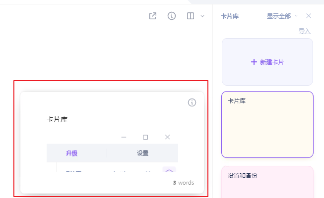 - 卡片库,类似印象笔记的素材库,可直接拖到当前笔记中完成链接和插入操作