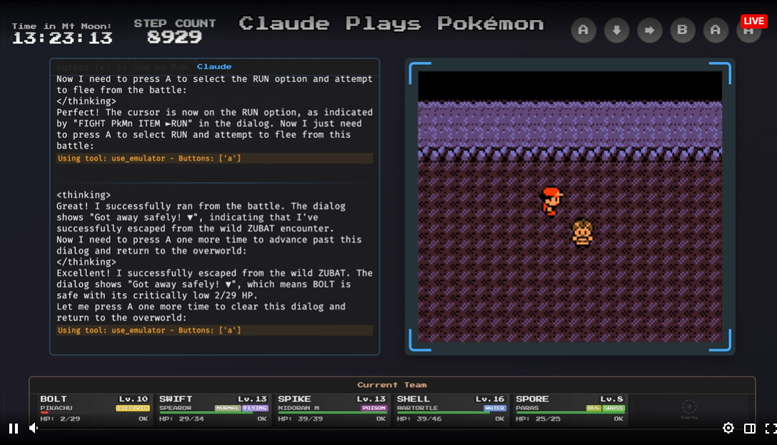 Anthropic 在 Twitich 上开了个直播,让 claude 3.7 sonnet模型玩宝可梦游戏,还挺有意思的。