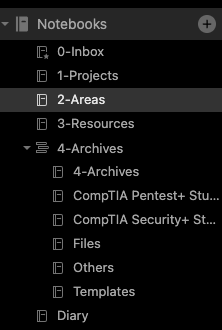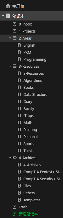 PAR为笔记本形式,只有Archives是个组,方便后期整理笔记本\