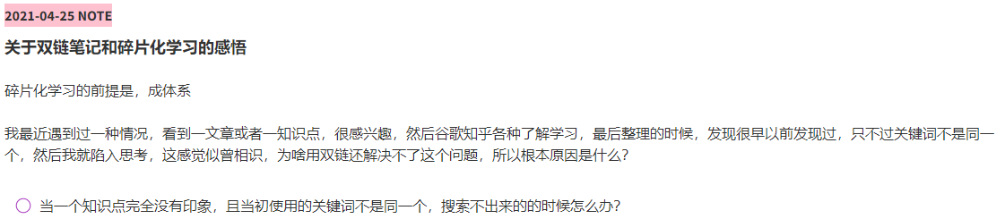 主要因为在使用RR期间,有一件事让我发现了一个问题,虽然至今还未完全解决该问题,但这引发了我对于知识管理的新的探索,\