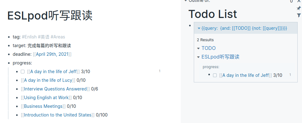 在daily note里面的todo,需要移动到对应的project或者goal笔记下